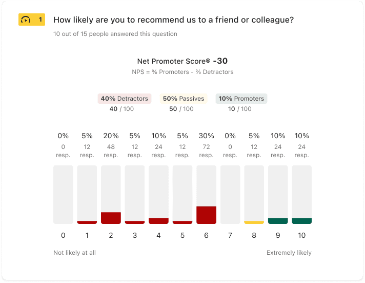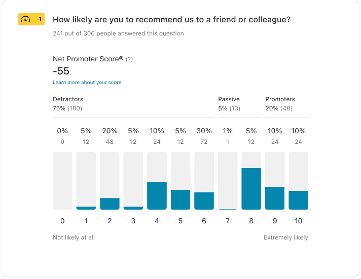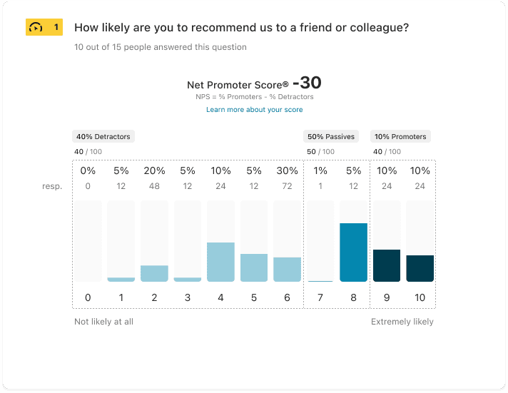 We shipped an NPS chart-based results UI alongside the new question type. Outcomes included: