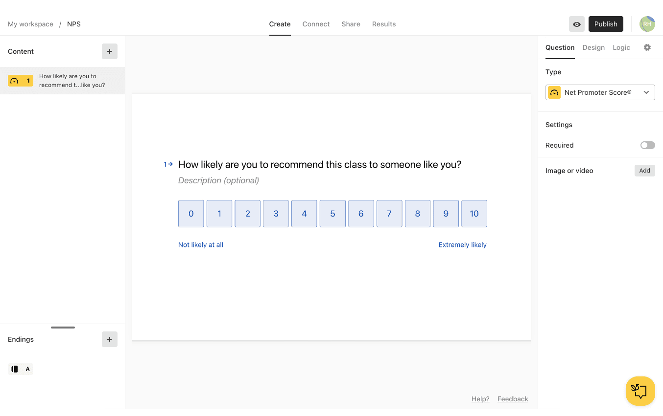Designing a seamless way to collect and interpret customer loyalty feedback inside Typeform.